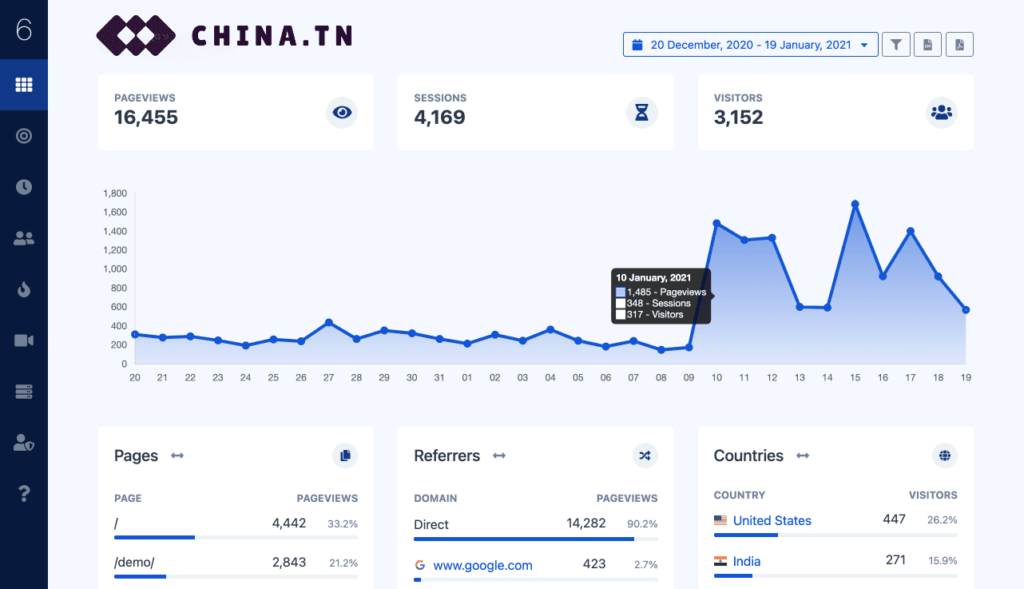 自己建了个网站流量统计, https://china.tn 数据掌握自己手里。